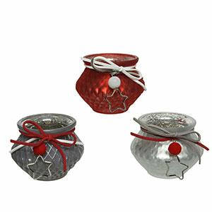 BICCHIERINO VETRO PORTA CANDELA CON PENDENTE STELLA CM.6
